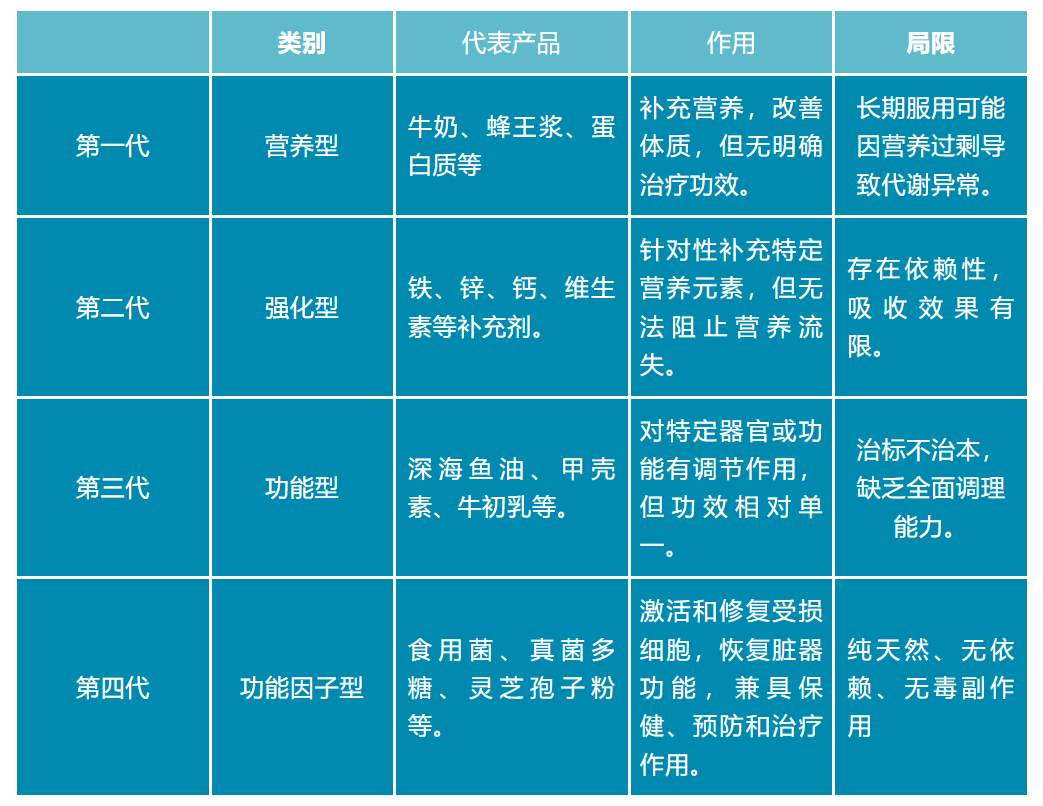 聯(lián)合國糧農(nóng)組織將食用菌納入人類最佳飲食結(jié)構(gòu)——“一葷一素一菇”,世界衛(wèi)生組織把保健品分成四代,其中食用菌作為第四代功能因子型,具有激活和修復(fù)受損細(xì)胞,恢復(fù)臟器功能,兼具保健、預(yù)防和治療等作用。