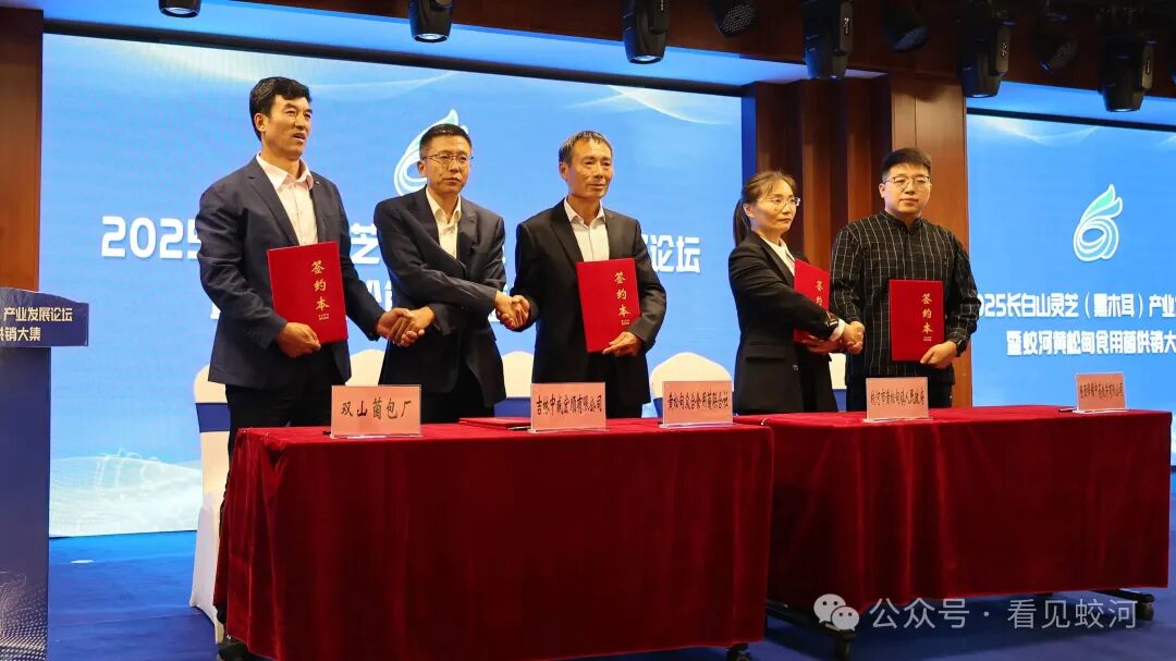 秋色如許,菌香滿(mǎn)園。9月26日,2025長(zhǎng)白山靈芝(黑木耳)產(chǎn)業(yè)發(fā)展論壇暨蛟河黃松甸食用菌供銷(xiāo)大集開(kāi)幕。中國(guó)工程院院士、全國(guó)脫貧攻堅(jiān)楷模、吉林農(nóng)業(yè)大學(xué)學(xué)術(shù)委員會(huì)主任李玉,吉林省“吉字號(hào)”特色產(chǎn)業(yè)高質(zhì)量發(fā)展工作專(zhuān)班班長(zhǎng)、省科協(xié)黨組書(shū)記陳耀輝,中國(guó)菌物學(xué)會(huì)理事長(zhǎng)郭良棟,省供銷(xiāo)合作社黨組書(shū)記、理事會(huì)主任劉高峰,省農(nóng)業(yè)農(nóng)村廳副廳長(zhǎng)王唯涌,吉林市委副書(shū)記李道恒,蛟河市委書(shū)記靳明,吉林省菌物學(xué)會(huì)理事長(zhǎng)、吉林農(nóng)業(yè)大學(xué)食藥用菌教育部工程研究中心主任李長(zhǎng)田,吉林農(nóng)業(yè)大學(xué)菌物學(xué)院教授李曉,中國(guó)農(nóng)業(yè)科學(xué)院特產(chǎn)研究所黨委副書(shū)記田欣等領(lǐng)導(dǎo),全國(guó)各地的食用菌采購(gòu)商、深加工企業(yè)代表和省內(nèi)外商協(xié)會(huì)的企業(yè)家等330余人參加開(kāi)幕式。