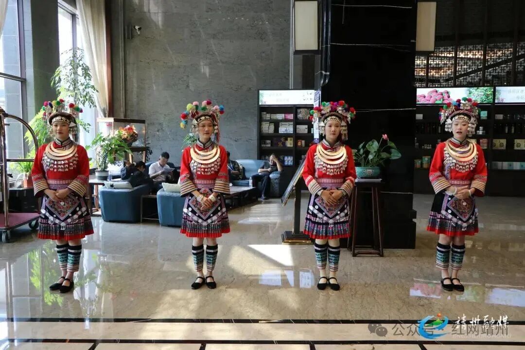 穿著少數(shù)民族服飾的迎賓人員(夏源懋 攝)