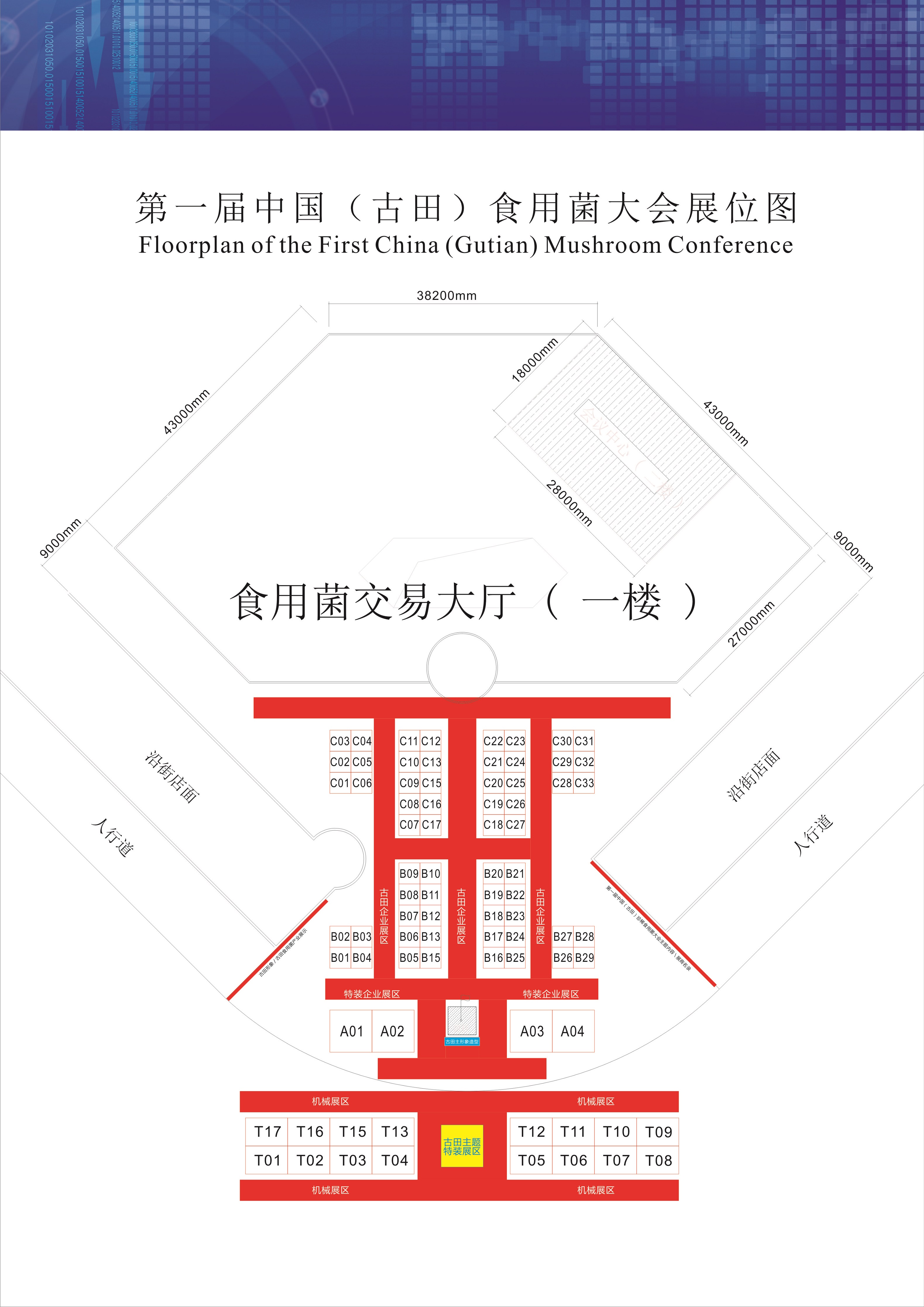 (2)標(biāo)準(zhǔn)展位(B區(qū)和C區(qū)):60個,每個面積為9平方米(3米×3米),其中B區(qū)的28個展位提供給古田縣本地企業(yè),具體展位分配由古田縣食用菌協(xié)會負責(zé)。C區(qū)的32個展位面向古田縣以外企業(yè)招展。