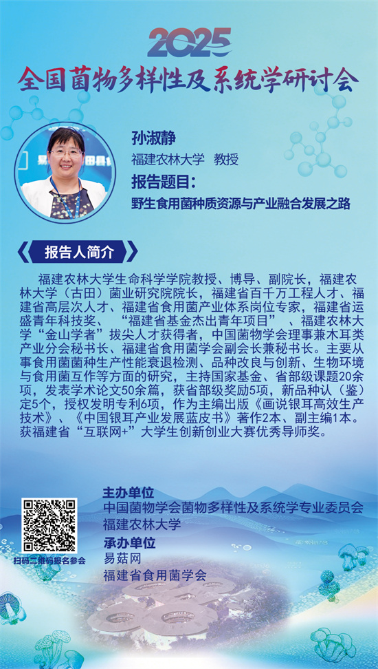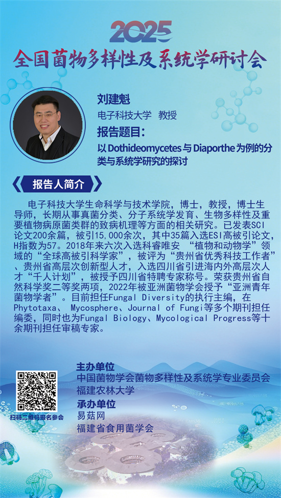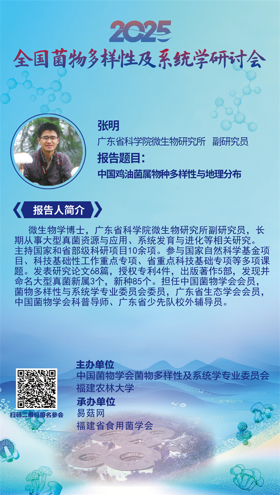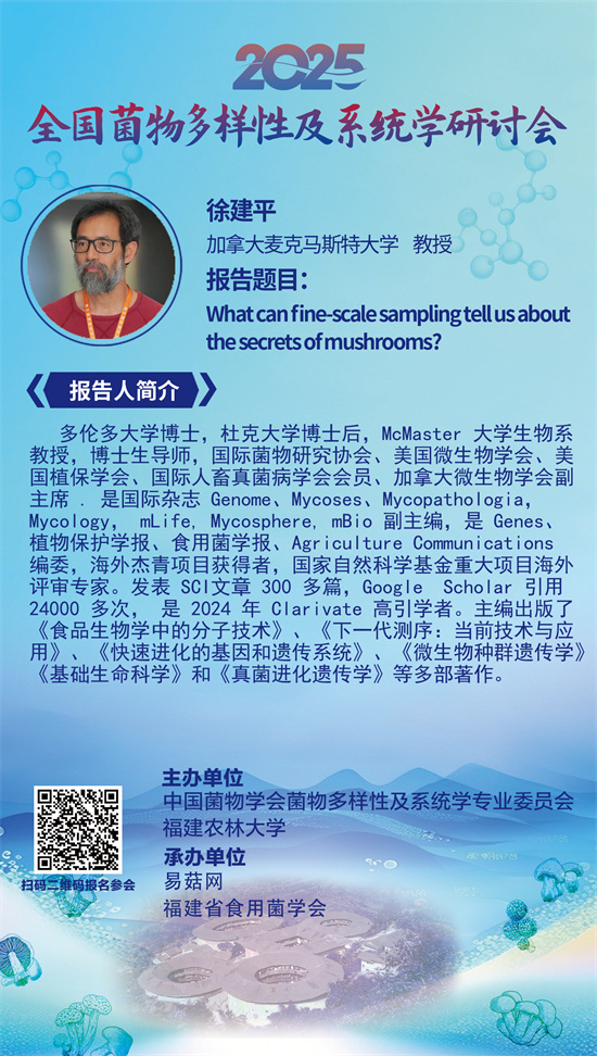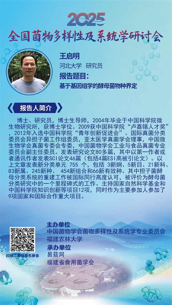 2025年全國菌物多樣性及系統(tǒng)學研討會將于2025年7月12-16日在福建漳州舉行,一組海報帶你了解大會報告嘉賓。