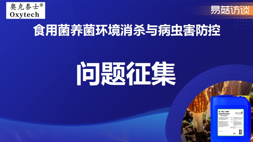 食用菌產(chǎn)業(yè)在農(nóng)業(yè)領(lǐng)域中發(fā)展迅猛,而養(yǎng)菌環(huán)境的消殺以及病蟲害防控,是決定食用菌產(chǎn)量與質(zhì)量的關(guān)鍵因素。為助力廣大從業(yè)者及愛好者深入了解相關(guān)知識,我們將舉辦 “奧克泰士?易菇訪談 | 食用菌養(yǎng)菌環(huán)境消殺與病蟲害防控” 直播訪談活動。