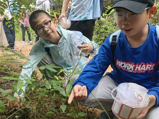 7月14日,營員們化身“小小科學(xué)家”,在天柱山森林公園展開實地考察。在專家指導(dǎo)下,孩子們學(xué)習(xí)科學(xué)采集方法,親手采集蘑菇、觀察不同蘑菇的生長環(huán)境,將理論知識轉(zhuǎn)化為實踐能力。