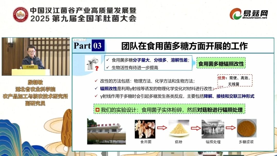 在湖北省食用菌協(xié)會2025年年會上,湖北省農(nóng)業(yè)科學(xué)院農(nóng)產(chǎn)品加工與核農(nóng)技術(shù)研究所殷朝敏博士系統(tǒng)展示了其團(tuán)隊在“食藥用菌多糖精深加工及產(chǎn)業(yè)化應(yīng)用”領(lǐng)域取得的多項重要成果。面對國內(nèi)食用菌產(chǎn)業(yè)同質(zhì)化競爭加劇、出口占比不足0.4%的嚴(yán)峻現(xiàn)實,該團(tuán)隊通過技術(shù)創(chuàng)新,成功開發(fā)出國際領(lǐng)先的多糖綠色制備與改性技術(shù),并推動多項成果在企業(yè)轉(zhuǎn)化,為產(chǎn)業(yè)高質(zhì)量發(fā)展提供了強(qiáng)有力的科技支撐。