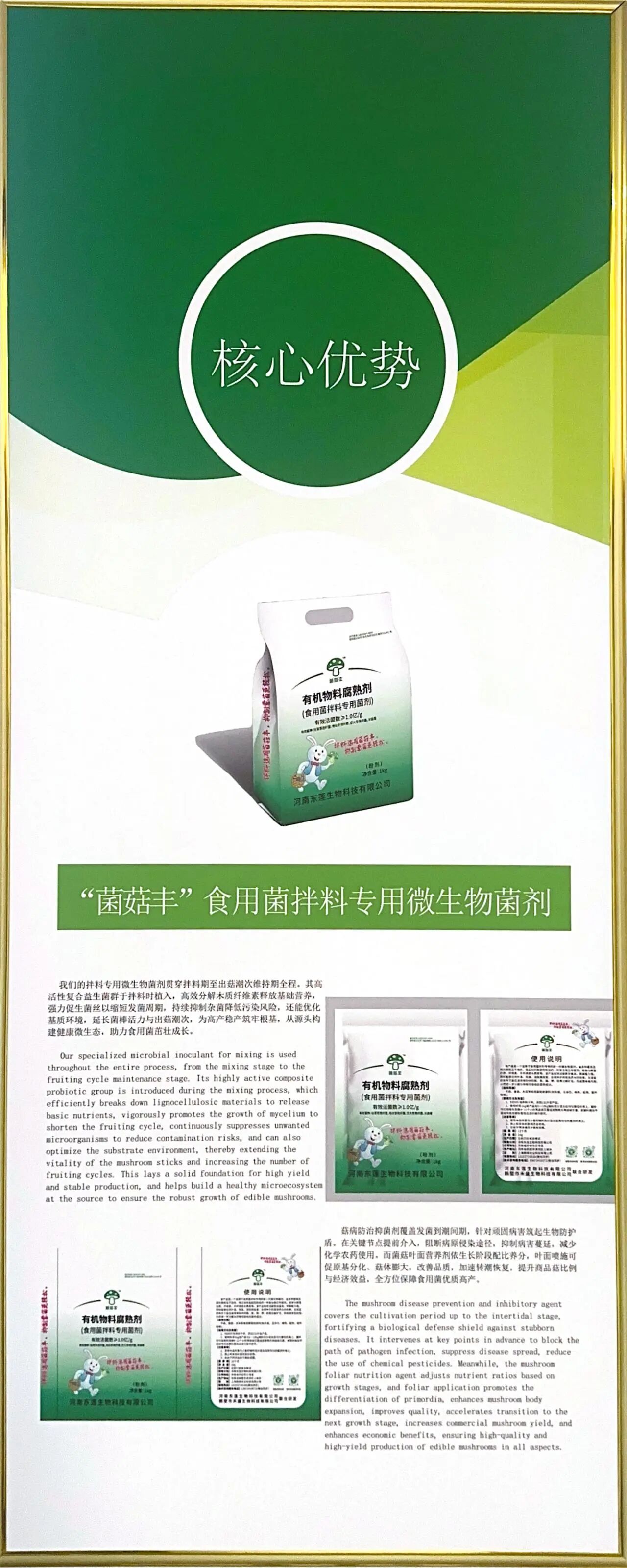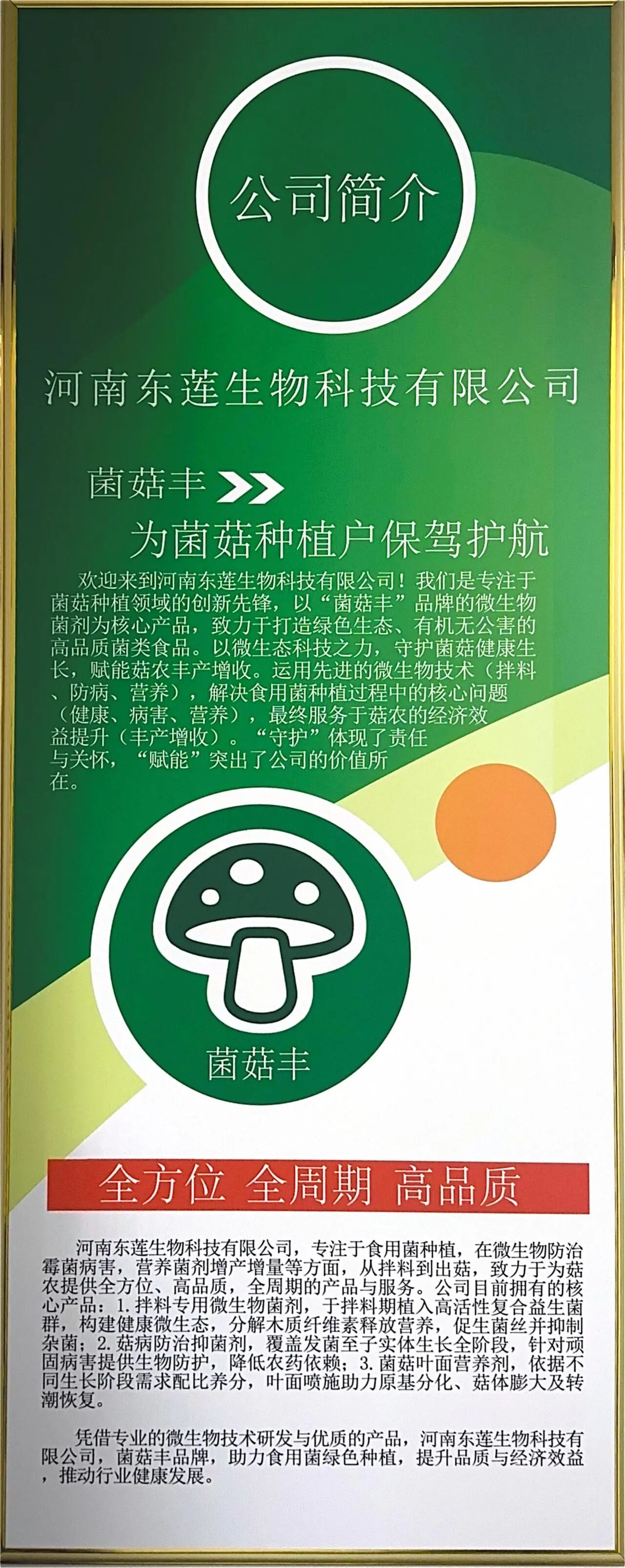 自2025年馬朋舉董事長創(chuàng)立“菌菇豐”品牌并成立河南東蓮生物科技有限公司以來,公司始終秉持“綠色健康”的核心發(fā)展理念,在食用菌種植領域?qū)崿F(xiàn)了從源頭到終端的全程綠色無害化管理。通過全周期應用有益微生物菌劑、打造良好的無污染栽培環(huán)境、嚴格禁用化學合成投入品(本產(chǎn)品為食用菌活性菌劑,嚴禁與其他化學產(chǎn)品混合使用)。并積極采用生態(tài)循環(huán)技術,公司成功研發(fā)出綠色無公害食用菌專用微生物菌劑(該產(chǎn)品更適合生產(chǎn)綠色無公害及出口菌菇產(chǎn)品使用),持續(xù)為市場提供安全、健康、高品質(zhì)的食用菌產(chǎn)品。