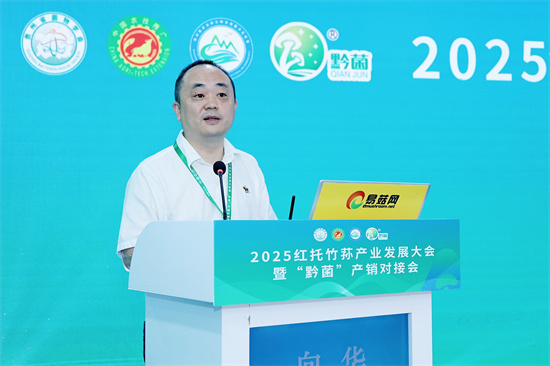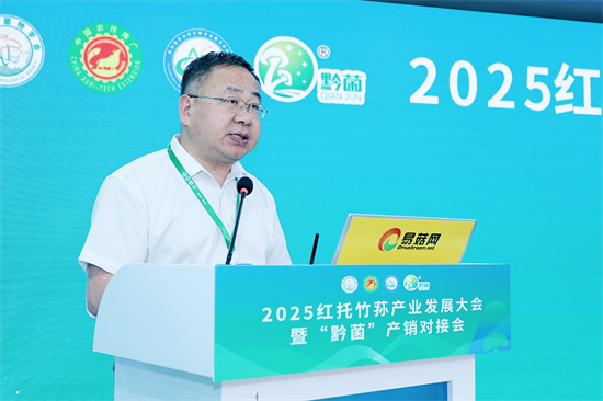 貴州大學(xué)副校長(zhǎng)王旭指出,學(xué)校始終堅(jiān)持“扎根貴州、服務(wù)地方”,將紅托竹蓀產(chǎn)業(yè)作為服務(wù)鄉(xiāng)村振興的重要領(lǐng)域。他介紹,貴州大學(xué)依托多個(gè)科研平臺(tái),在病蟲(chóng)害綠色防控、新品種選育和高效栽培技術(shù)上取得突破,建立全周期技術(shù)體系;開(kāi)設(shè)特色課程,建設(shè)實(shí)踐基地,培養(yǎng)500余名專業(yè)人才,80%扎根基層;通過(guò)“博士村長(zhǎng)”等項(xiàng)目開(kāi)展技術(shù)培訓(xùn)200余場(chǎng),推動(dòng)技術(shù)推廣至全國(guó)10余省。面向未來(lái),王旭副校長(zhǎng)提出四大方向:深化協(xié)同創(chuàng)新,突破全產(chǎn)業(yè)鏈技術(shù)瓶頸;加速成果轉(zhuǎn)化,推動(dòng)周年化生產(chǎn)和“互聯(lián)網(wǎng)+”銷售;強(qiáng)化人才培養(yǎng),增加國(guó)際合作項(xiàng)目;擴(kuò)大國(guó)際交流,推動(dòng)紅托竹蓀技術(shù)標(biāo)準(zhǔn)與國(guó)際接軌,助力“黔菌”走向世界。最后,他預(yù)祝大會(huì)圓滿成功,產(chǎn)業(yè)為鄉(xiāng)村振興注入更強(qiáng)動(dòng)力。