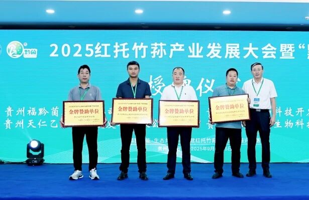 會(huì)上為還為貴州福黔菌業(yè)有限公司、貴州金蓀生物科技開(kāi)發(fā)有限責(zé)任公司、貴州天仁乙農(nóng)業(yè)科技發(fā)展有限公司、貴州金蟾大山生物科技有限責(zé)任公司等各贊助單位頒發(fā)了榮譽(yù)獎(jiǎng)牌,以表彰其對(duì)會(huì)議籌備、資源協(xié)同與產(chǎn)業(yè)生態(tài)建設(shè)所發(fā)揮的重要作用。各家企業(yè)的深度參與,為紅托竹蓀全鏈發(fā)展注入了堅(jiān)實(shí)動(dòng)力。