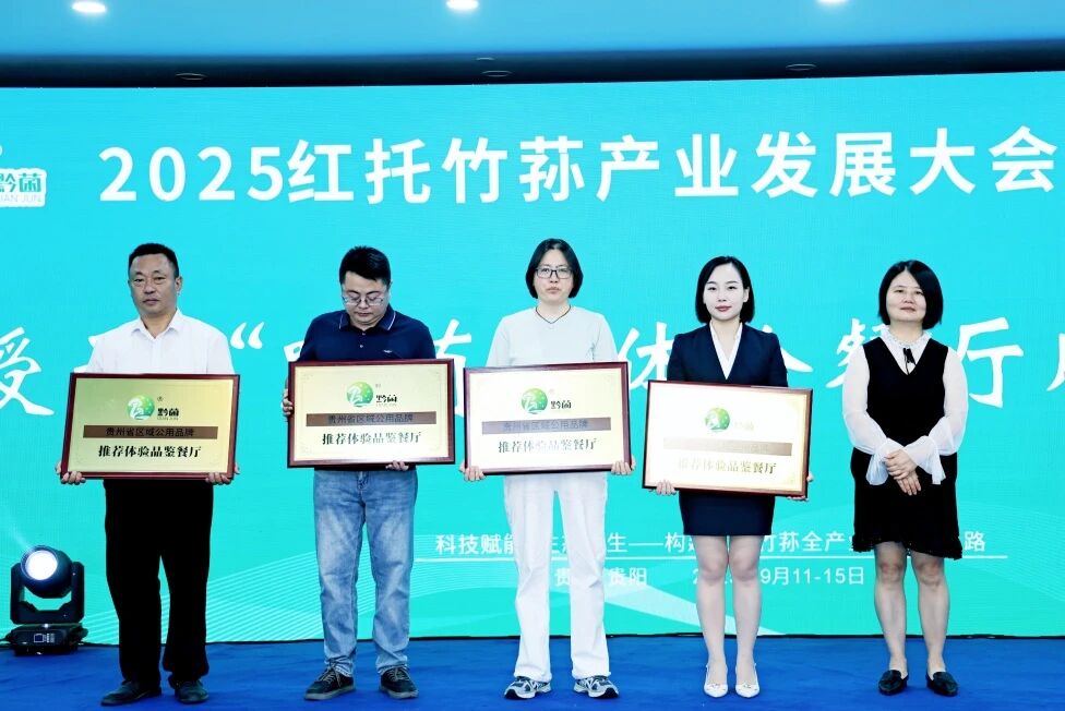 最后,進(jìn)行 “黔菌”體驗(yàn)餐廳授牌儀式,貴州泰韻餐飲服務(wù)有限公司、黔大叔臻品餐廳、格?;ㄩ_(kāi)蔬食餐廳、貴陽(yáng)觀山湖黔蘑菇四季餐廳成為首批授牌單位,為消費(fèi)者提供了品嘗和了解紅托竹蓀及各類黔菌美食的平臺(tái),對(duì)推廣黔菌文化、提升黔菌品牌知名度和美譽(yù)度具有重要意義。 “