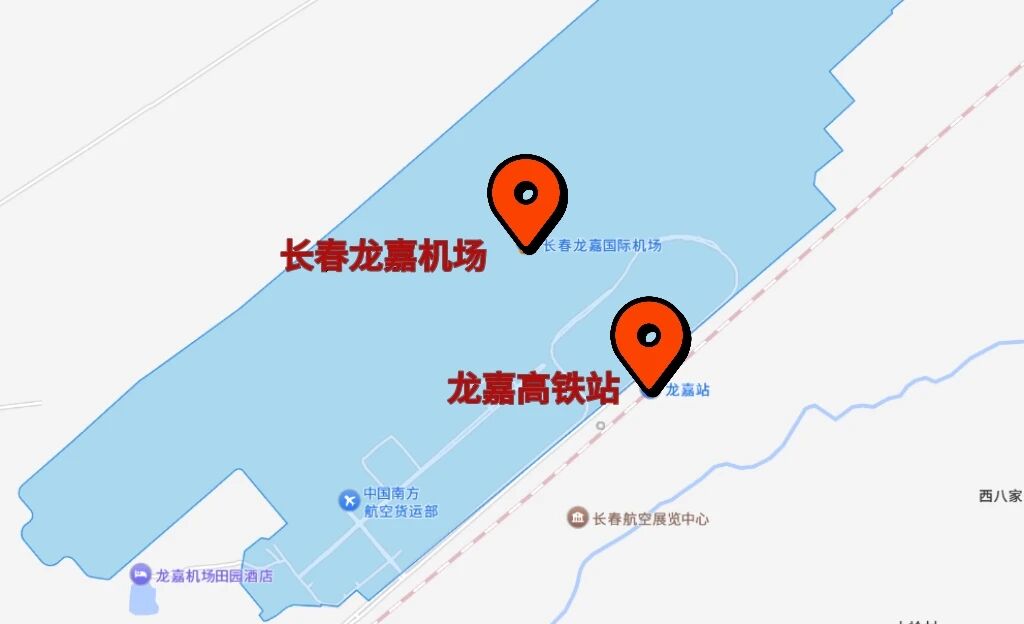 注意:長春龍嘉機場和龍嘉高鐵站在同一地方,下飛機后可根據指示牌步行即可到達高鐵站。