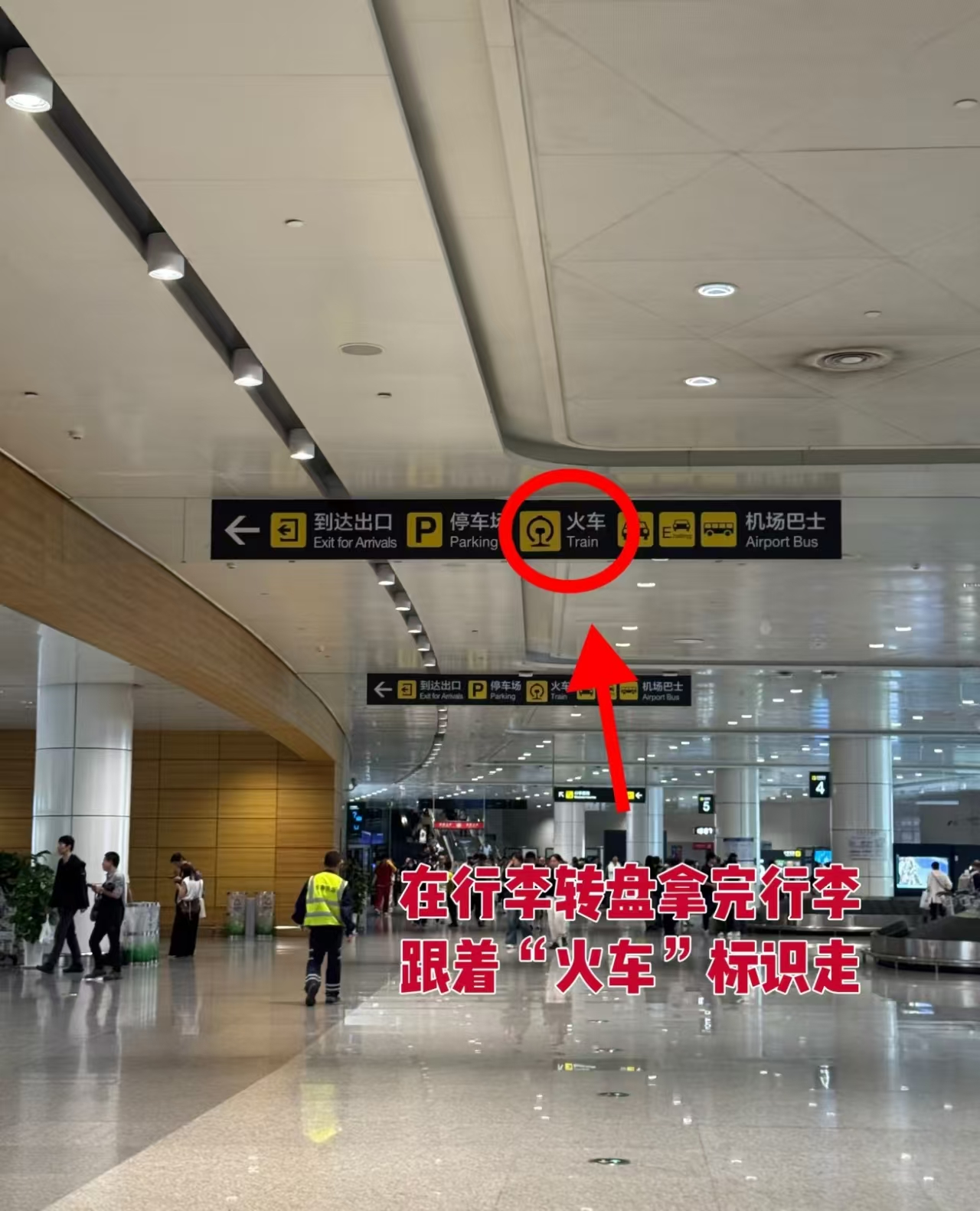 抵達長春龍嘉機場后,在行李轉盤拿完行李,抬頭就可以看到“火車”標識,跟著走一會看到去負一樓的扶梯,下扶梯后繼續(xù)跟著“高鐵站”標識走,走20分鐘左右到龍嘉高鐵站。