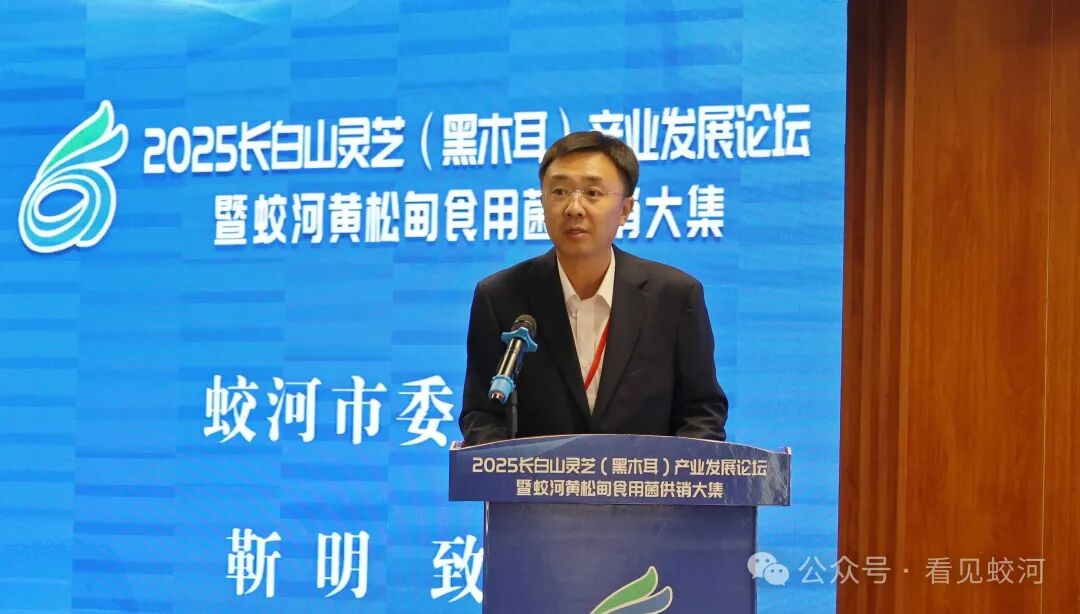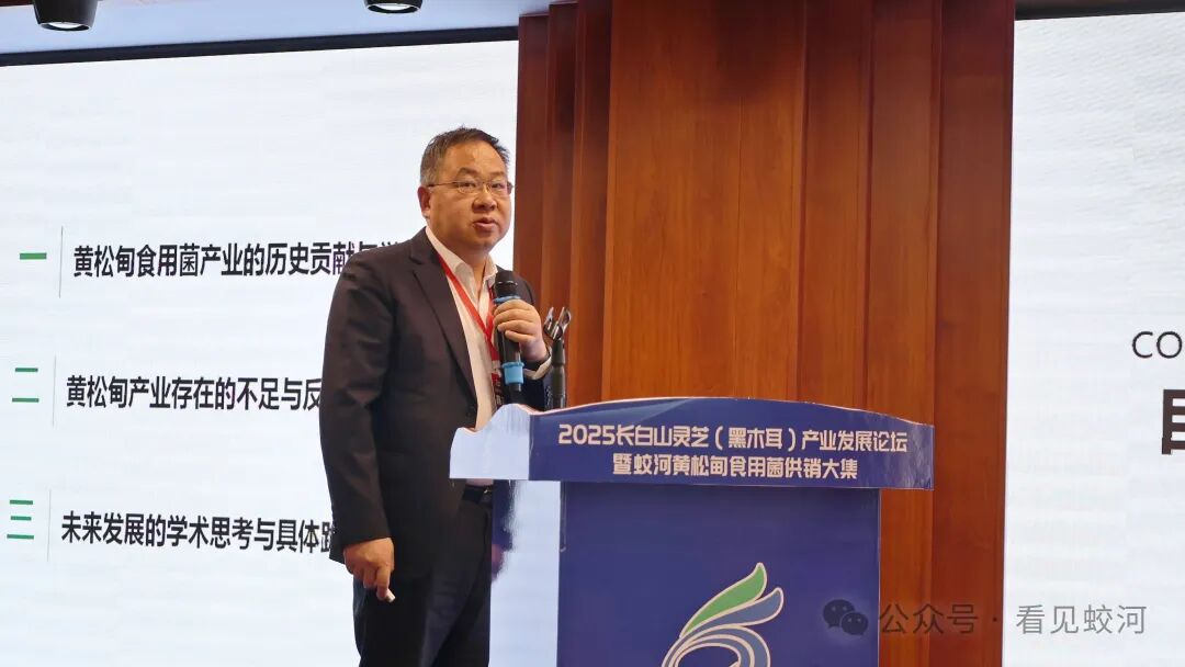 靳明代表蛟河市委、市政府向出席本次活動(dòng)的各位領(lǐng)導(dǎo)、各位專(zhuān)家和企業(yè)家朋友們表示熱烈的歡迎!靳明在致辭中說(shuō),蛟河市將以追趕者姿態(tài),緊緊依托李玉院士及其團(tuán)隊(duì)的技術(shù)支撐,深入實(shí)施食用菌產(chǎn)業(yè)高質(zhì)量發(fā)展三年行動(dòng),大力開(kāi)展生產(chǎn)基地建設(shè)、科技創(chuàng)新、主體培優(yōu)、人才培養(yǎng)等十大工程,全力推動(dòng)地栽傳統(tǒng)模式向智能化邁進(jìn),積極開(kāi)發(fā)靈芝茶飲、靈芝口服液、木耳醬菜等新產(chǎn)品,加快推進(jìn)黃松甸食用菌產(chǎn)業(yè)物流園項(xiàng)目竣工投用,實(shí)現(xiàn)三產(chǎn)融合并驅(qū)發(fā)展,全力爭(zhēng)創(chuàng)食用菌國(guó)家農(nóng)業(yè)現(xiàn)代化產(chǎn)業(yè)園。力爭(zhēng)到2026年,黑木耳標(biāo)準(zhǔn)化生產(chǎn)率達(dá)到80%,靈芝發(fā)展到420萬(wàn)段;培育食用菌精深加工龍頭企業(yè)10戶(hù),食用菌產(chǎn)業(yè)總產(chǎn)值實(shí)現(xiàn)42億元。今天,即將發(fā)布《黃松甸食用菌產(chǎn)業(yè)高質(zhì)量發(fā)展宣言》,簽約投資采購(gòu)項(xiàng)目,這既是合作的起點(diǎn),更是共贏的契機(jī)。誠(chéng)摯邀請(qǐng)各位企業(yè)家、采購(gòu)商與蛟河攜手,共同開(kāi)發(fā)精深加工產(chǎn)品,共同拓展國(guó)內(nèi)外市場(chǎng),讓蛟河食用菌走進(jìn)千家萬(wàn)戶(hù)、名揚(yáng)五湖四海。