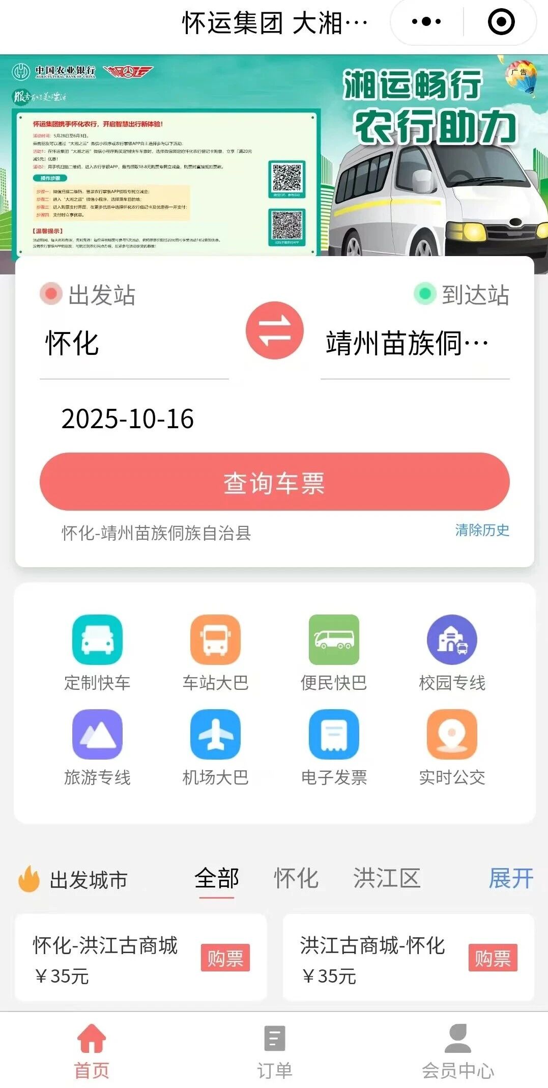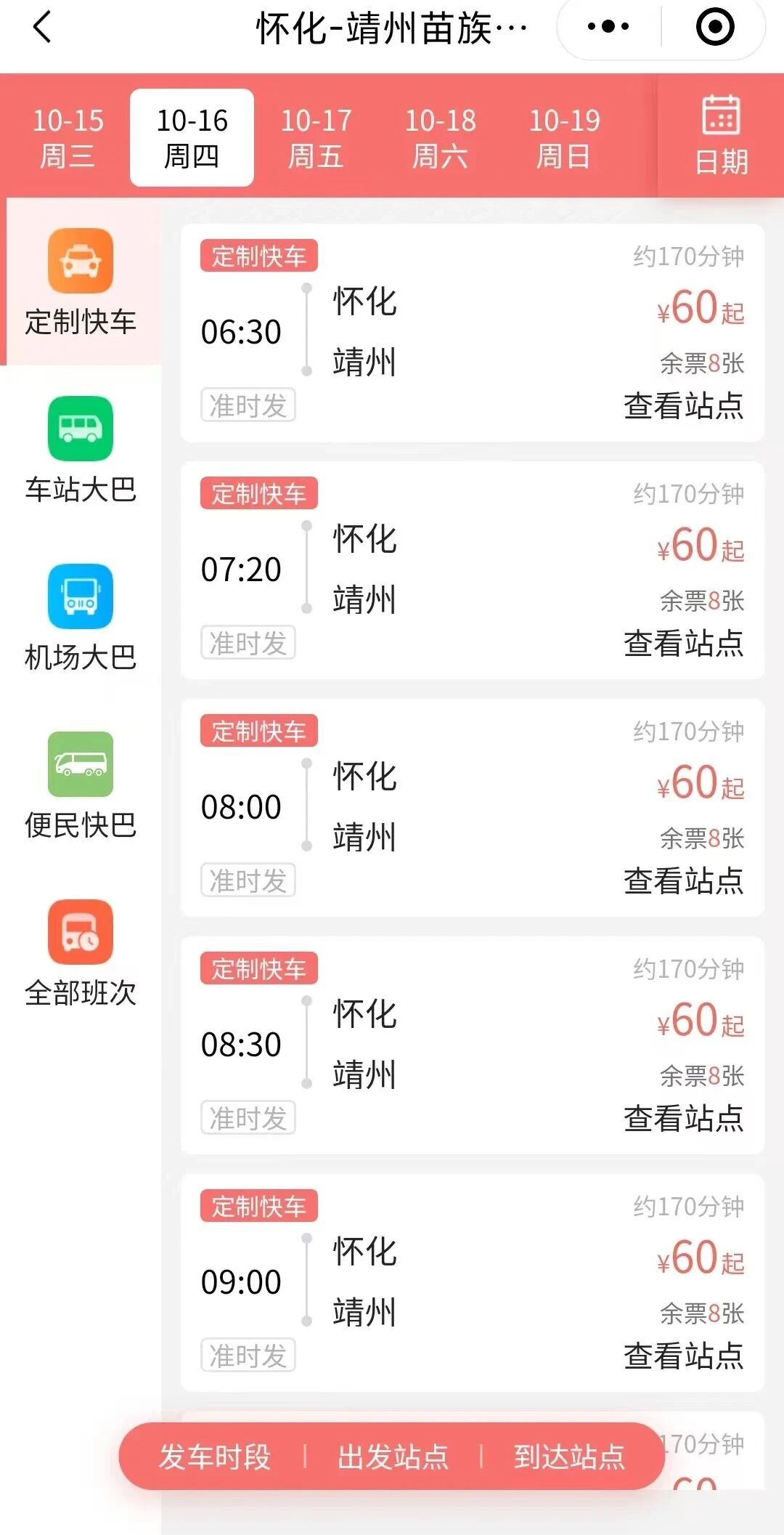 微信搜索懷運(yùn)集團(tuán) 大湘之運(yùn)小程序,進(jìn)入小程序,選擇出發(fā)站和到達(dá)站,點(diǎn)擊查詢車票