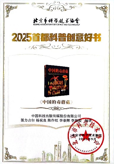 據(jù)悉,在近期舉行的“2025首都優(yōu)秀科普好書”評比中《中國的毒蘑菇》榮獲科普創(chuàng)意好書獎!“好書”是由北京市科協(xié)主辦的專業(yè)科普圖書推薦活動,2023年起每年舉辦一次。今年的活動有來自101家出版社的335部科普作品參加,經(jīng)專家評議選出100部圖書入圍。