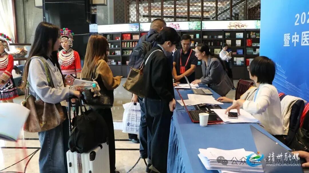 在和儂民族酒店大廳報到處,隨處可見“靖州元素”。工作人員有序協(xié)助辦理報到、酒店入住等事宜,并發(fā)放會議指南、資料匯編等物品。