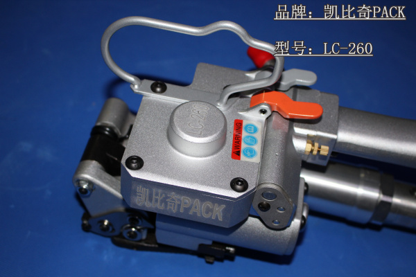 2、拉緊打包帶:用右手拇指按住張力開關(guān)桿(右側(cè))開關(guān)直至打包帶完全繃緊,振動和切斷:用右手拇指按住振動開關(guān)桿(紅色)直到打包帶切斷并熔接注意:按住氣動打包機(jī)振動開關(guān)桿,直到振動定時(shí)器自動停止。